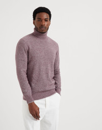 Accurate materials research and the iconic knitting of Brunello Cucinelli knitwear enhance the classic feel of this Donegal-effect turtleneck sweater. The premium-quality yarn combines alpaca with cotton and wool in a soft and warm blend, enriched by the distinctive streaked texture of the knop yarn. The fit is both regular and comfortable. MATERIALS Knitting of the knop yarn enhances the enveloping softness of the alpaca, cotton and wool blend with its typical streaked-effect texture. The natural composition of the yarn requires the presence of a small percentage of technical fiber that secures the structure of the garment. DETAILS High turned-down collar Regular shoulder Plain stitch 37% ALPACA, 30% COTTON, 26% NYLON, 7% WOOL