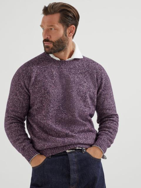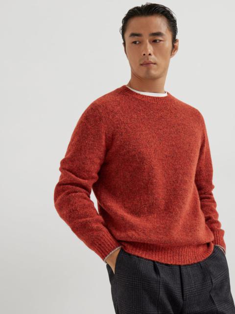 The careful selection of raw materials enriches this alpaca, wool, silk and cotton crew-neck sweater with an unmistakable charm. The artisanal workmanship enhances the natural qualities of the fibers in an airy, flecked yarn with a distinctive mottled and irregular coloration, creating a warm and cozy garment with balanced proportions. MATERIALS Soft and airy, the alpaca fibers add lightness to the wool, silk and cotton yarn, enhancing the natural qualities of the raw materials while ensuring warmth and comfort. The distinctive mottled effect of the flecked yarn enhances the season’s colors. DETAILS Rib knit crewneck Regular shoulder Rib knit cuffs and bottom band Plain stitch 36% ALPACA, 25% NYLON, 13% WOOL, 13% SILK, 10% COTTON, 3% VISCOSE