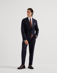 The excellence of Brunello Cucinelli materials enriches the classic feel of these Super 150s Tasmanian virgin wool Four Season twill trousers which are perfect to wear year-round. Their formal fit offers regular proportions both through the seat and along the leg. MATERIALS The clean and elegant appearance of the twill texture is combined with high quality Tasmanian wool. The processing of the very fine 150s yarn allows the creation of a lightweight fabric that is also compact and very comfortable. DETAILS Zip closure with double button and backing button Slanted front pockets Back welt pockets with button 18.5 cm (7,28") hem Formal fit: the fit is characterized by regular proportions in the seat and straight lines down the leg 100% VIRGIN WOOL