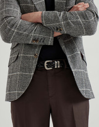 The excellence of Brunello Cucinelli yarns enhances the essential and balanced lines of these Italian-fit garment-dyed comfort gabardine trousers. American Pima cotton fibers, which are exceptionally long and strong, lend a smooth and compact hand to the fabric, highlighted by the irregular-effect matte color. The silhouette remains close to the body, but at the same time, offers slightly softer lines compared to more traditional fits. MATERIALS The American Pima cotton variety offers superior quality fibers in terms of length, luster and durability. Furthermore, dyeing performed directly on the garment and the particular finish give the color a “dusty” appearance and slight shading along the seams. The comfort is perfected with a small percentage of synthetic fiber incorporated into the fabric. DETAILS Zip closure with double button and backing button Slanted front pockets with watch pocket Back welt pockets with button Plain hem Italian fit: the fit is fitted and balanced, with a regular seat and waist 97% COTTON, 3% ELASTANE