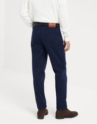 Garment-dyed comfort lightweight denim traditional fit five-pocket trousers