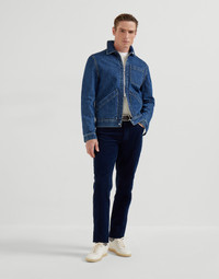 Garment dyed fine wale corduroy enriches the sporty character of these five-pocket trousers with a distinctive, modern touch. This fabric's thin ribbed texture enhances the season's colors with a sophisticated look. The Italian fit remains close to the body, but at the same time offers slightly softer lines than more traditional fits. MATERIALS Fine wale pure cotton corduroy flaunts a thin ribbed texture combining retro inspirations with a casual feel. Garment-dyeing lends a slightly irregular “worn” effect that enhances the refined seasonal colors. DETAILS Metal button closure Front pockets with watch pocket Back patch pockets Plain hem Italian fit: the fit is fitted and balanced, with a regular seat and waist 100% COTTON