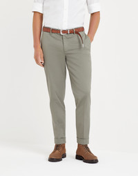 The classic character of the Italian fit trousers is enriched with the excellence of American Pima gabardine, a precious cotton fabric with superior characteristics. The Italian fit remains close to the body, but at the same time, offers slightly softer lines than the more traditional cuts. MATERIALS The American Pima cotton variety offers superior quality in terms of length, luster and strength of the fiber. Furthermore, garment-dyeing creates a particular finish that gives the color a dusty appearance and slight visible shading along the seams. A small percentage of spandex perfects comfort. DETAILS Zip closure with button and inner-buttons Slanted front pockets Back welt pockets with button Lining to knee 17.5 cm (6,89") hem Italian fit: the fit is fitted and balanced, with a regular seat and waist 97% COTTON, 3% ELASTANE