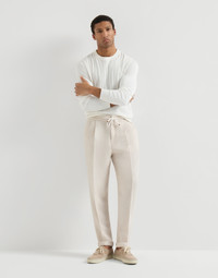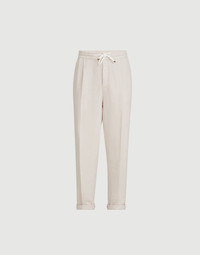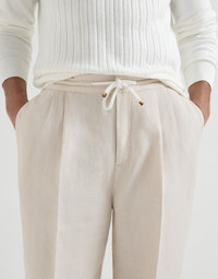 Garment-dyed trousers in linen gabardine with drawstring and double pleats
