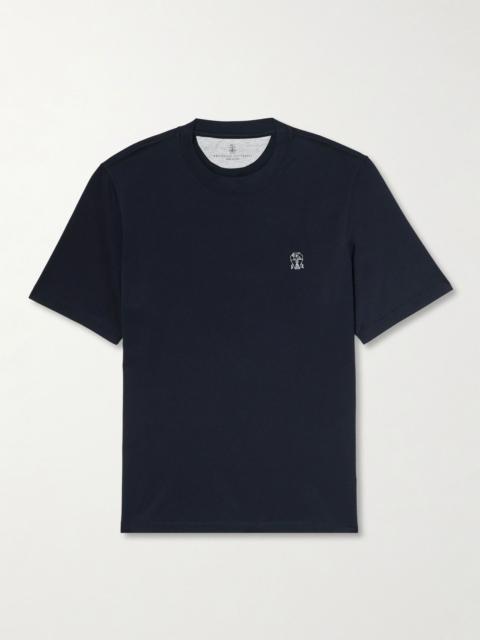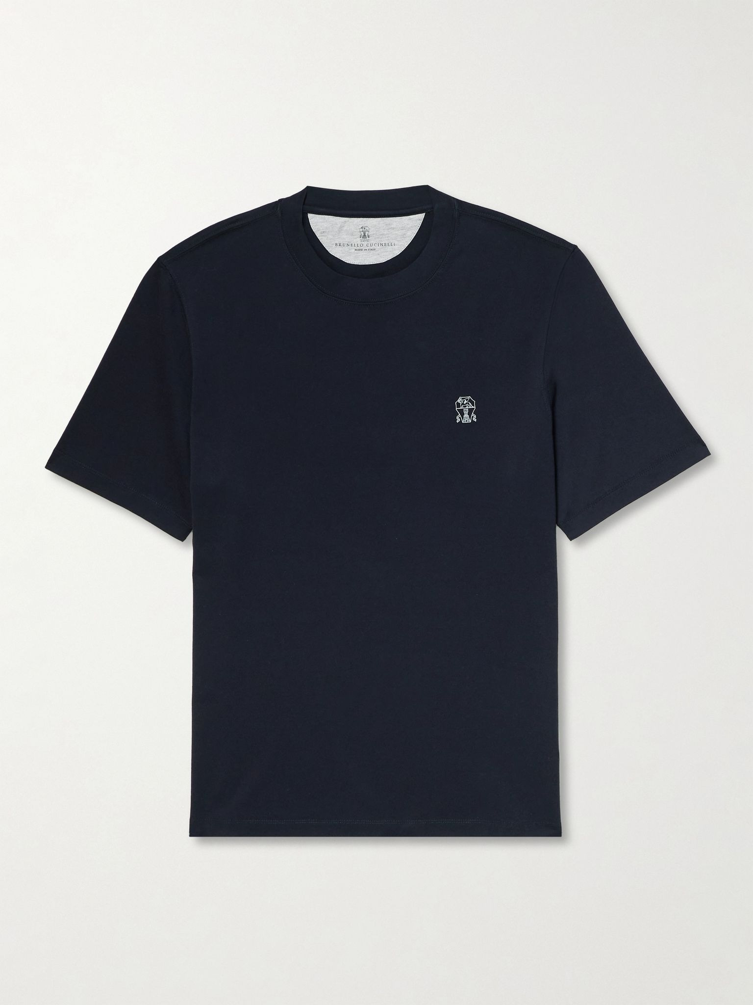 It's the commitment to quality fabrics and details that sets Brunello Cucinelli's staples apart – everything is made in specialist factories across Italy. This T-shirt is cut from soft cotton-jersey and printed with a crest that commemorates the label's hometown of Solomeo, Italy. Note the layered effect at the crew neck. Size & Fit - Fits true to size. Take your normal size - Designed for a regular fit - Mid-weight, slightly stretchy fabric - Model is shown wearing a M - Model measures: chest 38"/ 96cm Details & Care - Black and grey cotton-jersey - 100% cotton - Machine wash