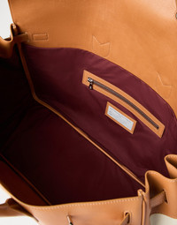 A hybrid of sporty inspiration and a functional look, this country bag elevates the practicality of a classic duffel bag through the use of refined materials. The surface combines the natural grain of calfskin with the smooth, matte texture of cowhide, enhancing the leather's handcrafted finish. The flap closure features a clasp with a metal hook and an adjustable strap. The inside is equipped with a side compartment and a zipper pocket, while the adjustable and removable padded shoulder strap makes the accessory easy to carry. MATERIALS The crafting of the calfskin leather characterizes the color with a refined, slightly uneven look that enriches the grain with mild shading. The cowhide enhances the accessory’s refined feel with a lightly grained surface and a matte finish. A water-resistant fabric lining protects the contents from possible contact with water. DETAILS Flap closure with adjustable straps Double handle Water-resistant fabric lining Internal pocket with zip closure Internal document pocket Removable name tag All metal parts are Nickel-free The accessory is approximately 58 cm (22.83") long, 50 cm (19.69") high, and 25 cm (9.84") wide REAL LEATHER