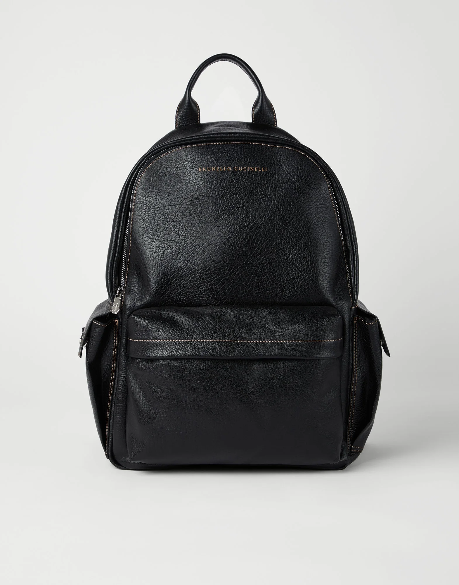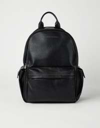 A versatile accessory that is perfect for moving around the city or travel, this backpack marries functional design with refined materials. The grained calfskin’s special finish gives the leather a unique, irregular coloring with a vintage feel. On the outside, two small side pockets with magnetic closures and a front zipper pocket allow you to always have your essentials within reach. A strap on the back allows you to attach the backpack to a trolley to make transport easy. MATERIALS Special techniques used during the manufacturing process enrich the color and texture of the grained calfskin leather with a slightly uneven appearance, giving it a vintage feel. On the inside, a water-resistant fabric lining ensures extra protection. DETAILS Zip closure Adjustable shoulder straps Handle Outside zipper pocket Side pockets with flap and snaps Water-resistant fabric lining Internal pocket with zip closure 3 open internal compartments Strap on back for attaching to trolley handle All metal parts are Nickel-free Accessory is approx. 31 cm (12.2") long, 43 cm (16.9") high, and 18 cm (7.1") wide REAL LEATHER