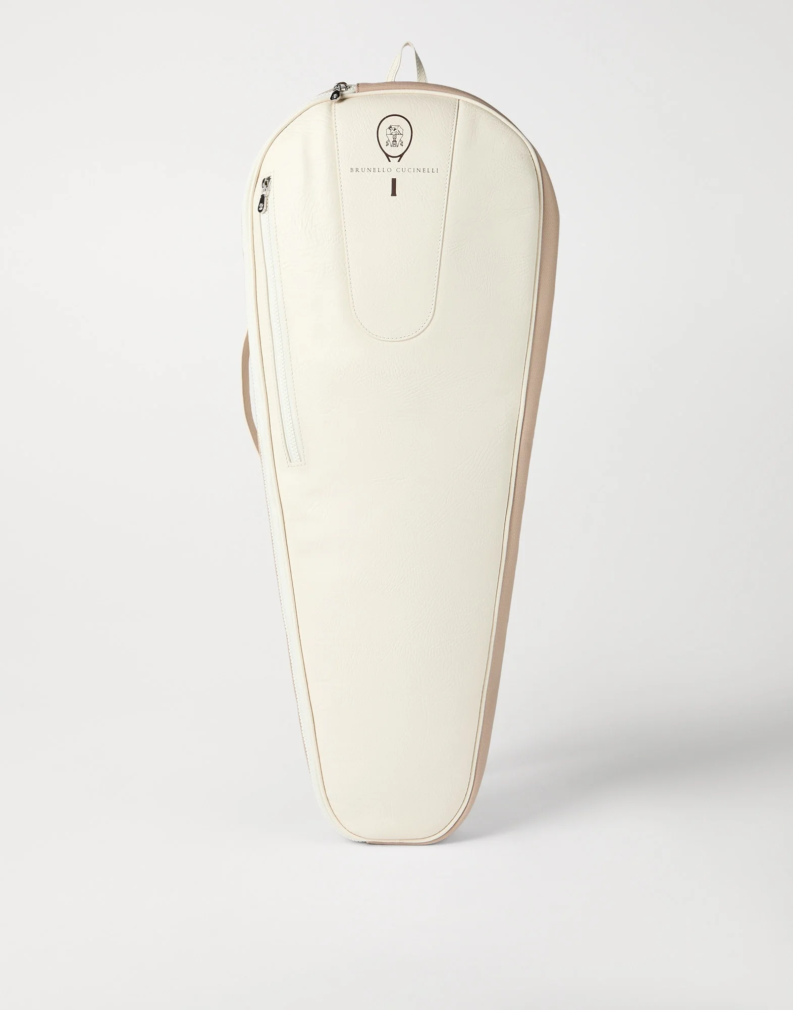 The sporty yet elegant feel of the world of Tennis inspires a selection of creations that enrich the Lifestyle collection. Practical and elegant at the same time, this racket case is made of grained calfskin, adding a nice and sophisticated texture. The Tennis logo completes the accessory with an iconic element. MATERIALS Precious accessories for enjoying moments of relaxation with an elegant and functional touch. Selected materials and craftsmanship give each item the distinctive character of the Brunello Cucinelli collections. DETAILS Two-way zip closure Handle Outside zipper pocket Removable racket holder 100% REAL LEATHER