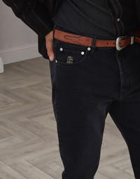 The shades of Grayscale denim enrich the timeless silhouette of these five-pocket trousers with a retro-inspired, sophisticated touch. The iconic fit features a slightly high-waisted cut, developing evenly down the leg. MATERIALS The refined color of the Greyscale denim stems from a traditional fabric production process. As a result, the original color will lighten slightly with daily use, acquiring sophisticated color shades on the grey scale. DETAILS Metal button closure Front pockets with watch pocket Back patch pockets Iconic fit: the fit is characterized by slightly high-rise proportions with a regular design along the leg 100% COTTON