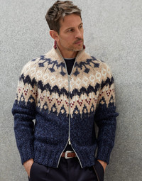 This OPERA turtleneck cardigan represents a special creation of superior craftsmanship. The garment combines different precious yarns together to enrich the traditional Nordic-inspired designs with a refined color effect. The lower wool and alpaca chiné knit part features a streaked texture, while the upper part is made from cashmere and Piuma cashmere yarns of different colors and is hand-knitted with the jacquard technique to create a retro-style textured design. It takes about 18 hours of work to hand-knit the upper part, which gives each piece its own unique and unmistakable features. MATERIALS This exclusive OPERA cardigan features a special mix of alternating yarns knitted with the jacquard technique to create a Nordic-inspired geometric design: a wool and alpaca chiné thread, a cashmere thread and a Piuma cashmere thread in different nuances. Hand knitting makes every creation unique. DETAILS High collar Two-way zip closure Jacquard-knit 100% CASHMERE
