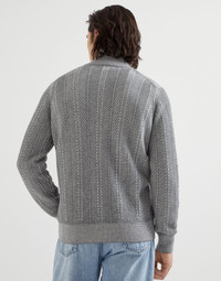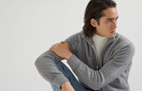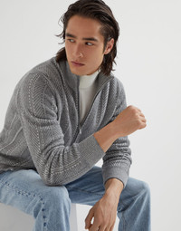 A mix of different inspirations and influences brings to life the dynamic and essential silhouette of this pure cashmere zipper cardigan. The vanise workmanship uses two yarns dyed in different colors to create a unique layering of colors for each garment, highlighted by the three-dimensional movement of the chevron weave. The fit offers regular proportions both in the chest and the sleeves. MATERIALS Cashmere is characterized by its extremely fine fibers and natural insulating qualities, which guarantee warmth, coverage and lightness when worn. The two-ply yarn construction gives the garment a balanced weight and fully expresses the softness of the precious natural fiber. DETAILS Two-way zip closure Funnel neck Regular shoulder Rib knit cuffs and bottom band Jacquard-knit 100% CASHMERE