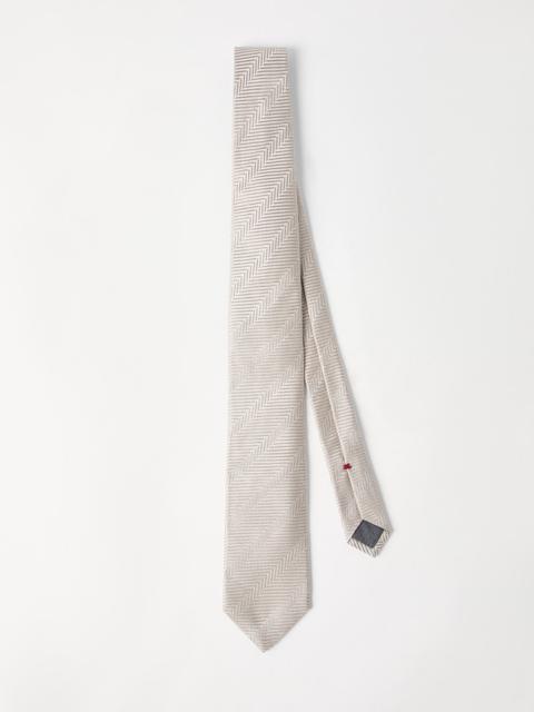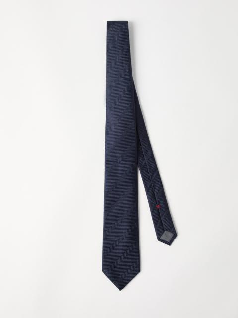 The distinct sheen of the silk fabric enriches the traditional Chevron pattern, creating a must-have accessory to complete the most classic outfits. MATERIALS A timeless accessory, this elegant necktie is perfect for completing looks with a personal touch. DETAILS Maximum width approx. 7.5 cm (2.95") Length approx. 147 cm (57.87") 100% SILK