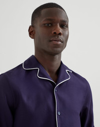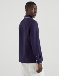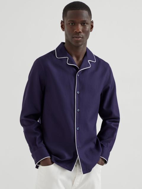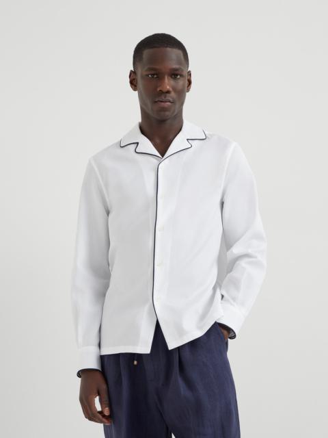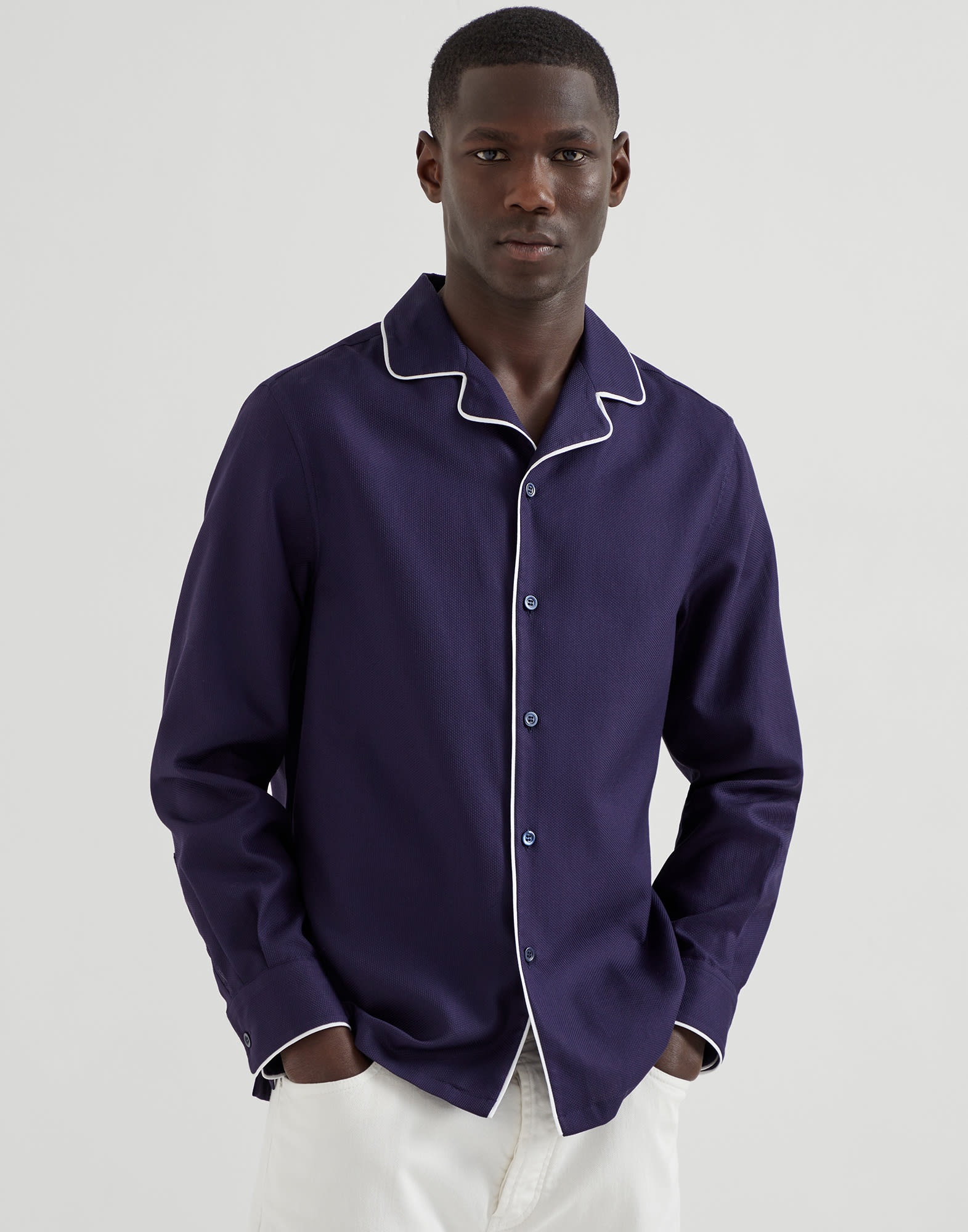 Honeycomb texture cotton easy fit shirt with camp collar and piping