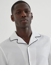 Honeycomb texture cotton easy fit shirt with camp collar and piping