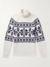 Brunello Cucinelli's sweater is made from soft cashmere and intarsia-knitted with a suitably seasonal snowflake design. It has a cosy ribbed rollneck for added warmth. Size & Fit - Fits true to size. Take your normal size - This sweater is designed for a relaxed cut - Mid-weight knit - Model wears an IT 48 - Model measures: chest 38"/ 96cm, height 6'2"/ 188cm Details & Care - White and blue cashmere - 100% cashmere - Dry clean - This item has been imported