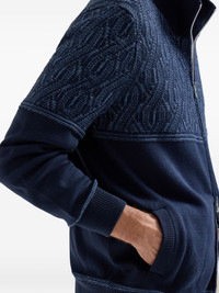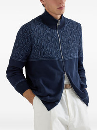jacquard cable cotton cardigan Highlights - Navy blue - Jacquard cable shoulder - Zip fastening - Cotton - Ribbed cuffs - Welt pockets Made in Italy Composition Cotton 100% Washing instructions Hand Wash
