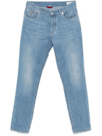 light blue button fly fastening belt loops classic five pockets logo patch to the rear - Made in: Italy - Designer Style ID: ME645D3210 C1470 Composition and care Outer Composition Cotton: 100.0%, Lining Composition Cotton: 100.0%, Outer Composition Calf Leather: 100.0%