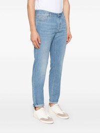cuffed-hem jeans Highlights - Light blue - Button fly fastening - Belt loops - Classic five pockets - Logo patch to the rear Made in Italy Composition Outer: Cotton 100%, Calf Leather 100% Lining: Cotton 100% Washing instructions Machine Wash