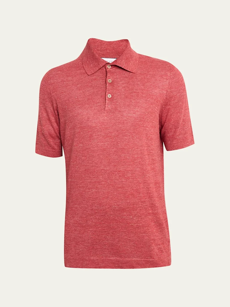 Men's Linen and Cotton Heathered Polo Shirt