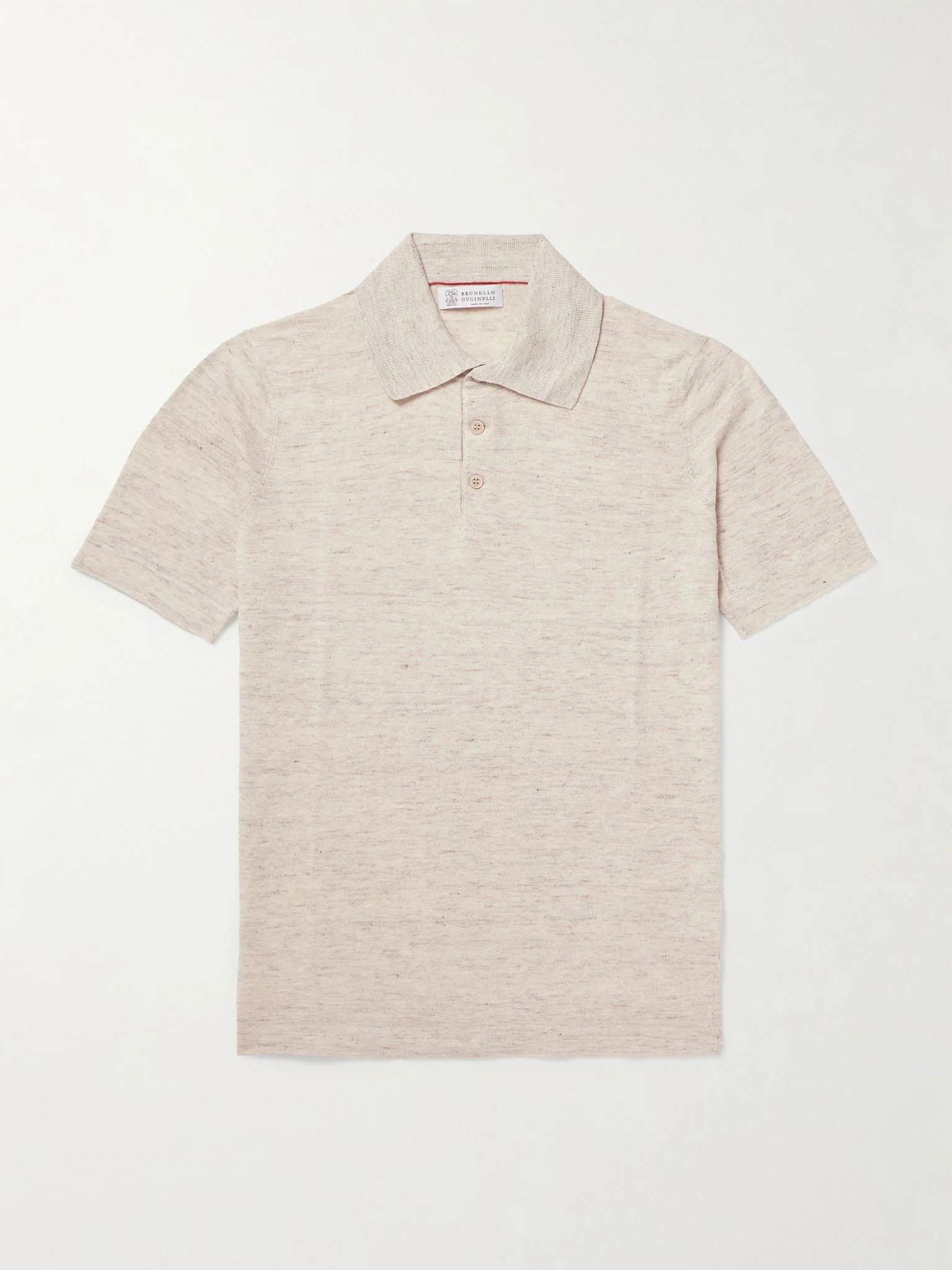 Brunello Cucinelli often designs for the warm climes of its hometown in Solomeo, Italy, where pieces like this polo shirt would certainly help in the high temperatures. It's spun from a breathable linen and cotton-blend and ribbed at the edges to define its slightly loose shape. Size & Fit - Fits true to size. Take your normal size - Designed for a slightly loose fit - Lightweight knit - Model is shown wearing a M - Model measures: chest 38"/ 96cm, height 6'2"/ 188cm Details & Care - Beige melange linen and cotton-blend - Button fastenings - 77% linen, 23% cotton - Hand wash - Shell: Vietnam