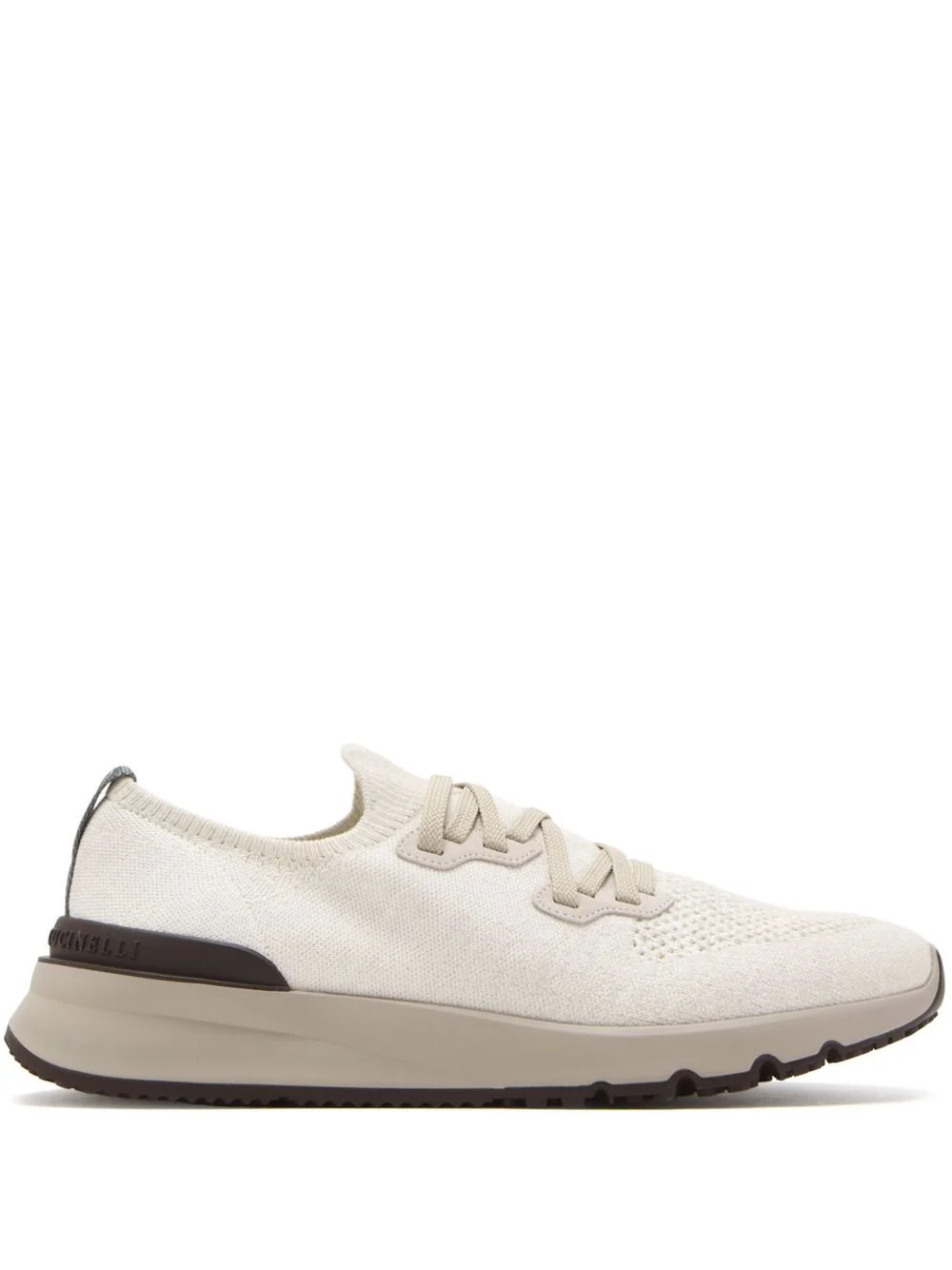 Knit Runners sneakers Highlights - Cream white - Front lace-up fastening - Pull-tab at the heel - Ribbed ankles - Flat rubber sole Made in Italy Composition Outer: Cotton 89%, Nylon 10%, Elastane 1% Lining: Fabric 100% Sole: Rubber 100%