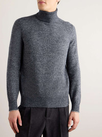 Knitwear is where it all began for Brunello Cucinelli, and the Italian brand's expertise is still evident in every piece. This sweater is blended with alpaca, cotton and wool for a soft handle and knitted with a ribbed rollneck to add to the cozy feel. Size & Fit - Those with broad shoulders may wish to take the next size up - Mid-weight knit - Model is shown wearing an IT 50 - Model measures: chest 38"/ 96cm, height 6'2"/ 188cm Details & Care - Blue mélange alpaca, cotton, polyamide and wool-blend - 37% alpaca, 30% cotton, 28% polyamide, 7% wool - Hand wash