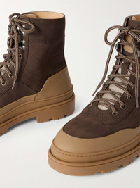 Brunello Cucinelli's military-inspired hiking boots have been made in Italy from durable pebble-grain nubuck that's naturally resistant to scuffs and scratches. They're trimmed with rubber and leather for enhanced durability. Size & Fit - Fits true to size. Take your normal size - European sizing Details & Care - Brown pebble-grain nubuck (Calf), cream mesh, camel leather and rubber - Lace-up