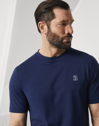 The excellence of Brunello Cucinelli materials enriches this classic crew-neck T-shirt. Soft cotton jersey enhances the season's colors with a casual, versatile feel, while the logo printed on the chest completes the style with an iconic element. The silhouette features regular proportions. MATERIALS Fine natural cotton fiber enriches the soft jersey, a lightweight fabric with a soft, fluid hand. DETAILS Crew-neck Flat pressed hem at cuffs and bottom Basic fit 100% COTTON