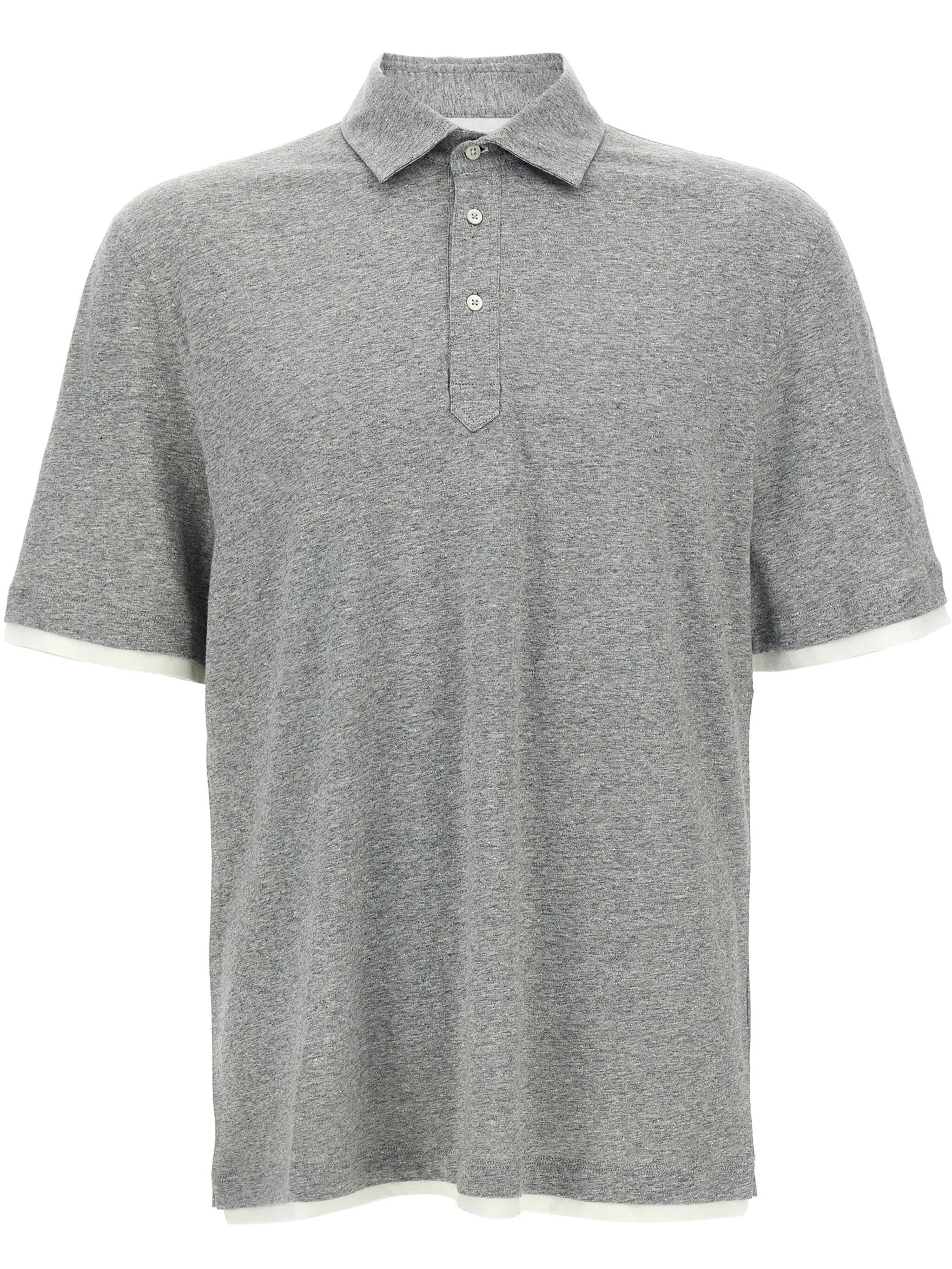 heather grey front button placket polo collar contrasting trim short sleeves - Color: GREY - Made in: Italy - Designer Style ID: MW8353966 CJC56 Composition and care Cotton: 43.0%, Linen/flax: 57.0%