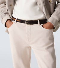 A testament to Brunello Cucinelli’s understated elegance, this belt combines refined craftsmanship with timeless Italian style. Crafted from leather, this accessory features a silver-toned buckle fastening and contrasting braided details. Product Details - Material: leather - Lining: leather - Made in Italy - Designer color name: Cbv30 - Item color: brown - Hardware color: silver - Includes: box, dust bag - Item number: P01056110 Size & Fit - Width 2.5cm-1" - Buckle width 3.5cm-1.5"