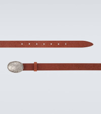 Brunello Cucinelli's designs are created in Solomeo, a medieval hamlet whose art and traditions are woven into the house's every fiber. This belt is crafted from supple brown leather and boasts a silver-toned buckle. Product Details - Material: calf leather - Lining: leather - Made in Italy - Color: brown - Designer color name: Cuoio - Item color: brown - Hardware color: silver - Closure: buckle fastening - Includes: box, dust bag - Item number: P01138548 Size & Fit - Width 2,5cm-1" - Buckle width 3,8cm-1.5"