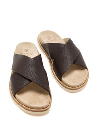 leather sandals Highlights - Coffee brown - Crossover strap detail - Round open toe - Moulded footbed - Flat rubber sole Made in Italy Composition Sole: Rubber 100% Lining: Calf Suede 100% Outer: Calf Leather 100%