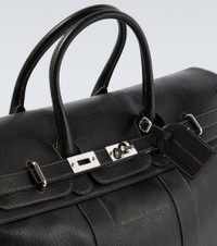 Brunello Cucinelli's designs are created in Solomeo, a medieval hamlet whose art and traditions are woven into the house's every fiber. This tote bag is crafted from supple leather and boasts two tubular top handles and a detachable address tag. Product Details - Material: leather - Lining: fabric, leather - Made in Italy - Color: black - Designer color name: Nero - Hardware color: silver - Top handles - Closure: turn-lock fastening - Internal details: internal zipped pocket - Detachable address tag - Protective feet - Includes: dust bag - Item number: P01138552 Size & Fit - Height 35cm-14" - Width 53cm-21" - Depth 20cm-8" - Length of handles 50cm-19.5"