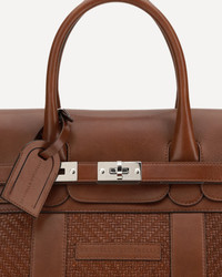 The leather Travel Bag by Brunello Cucinelli combines elegance and practicality with a peg flap closure and double handles. The water-repellent fabric lining protects items, while the interior offers a zippered pocket and document pocket. Completing the design is a removable name tag for a personalized touch. DETAILS - Sku: MBXOBU071_C9186 - Season: SS26 - Dimension: 50x50x25 - Composition: GENERAL 100% Calf Leather Bos Taurus - MADE IN ITALY