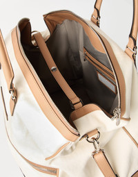 A summery reinterpretation of a classic style, this Summer Boston bag embodies the spontaneous levity of an escape from the city. The cotton and linen fabric stands out for its unique, irregular weave, enriched by the delicate contrast with the soft matte calfskin’s finish. Spacious and functional, the bag is easy to carry with its double handles and shoulder strap, while the exterior pocket allows you to always have the essentials within reach. MATERIALS The mix of cotton and linen fibers gives a slight slubbed effect to the surface of the fabric, which features a fresh, dry hand. The finish of the calfskin enhances its natural grain, creating a slightly uneven color and a light worn appearance. The water-resistant fabric lining completes the accessory. DETAILS Zip closure Adjustable and detachable shoulder strap Double handle Outside zipper pocket Water-resistant fabric lining Internal pocket with zip closure Inside, leather straps with snaps to adjust the volume All metal parts are Nickel-free Accessory is approx. 45 cm (17.72") long, 32 cm (12.60") high, and 27 cm (10.63") wide 63% COTTON, 37% LINEN