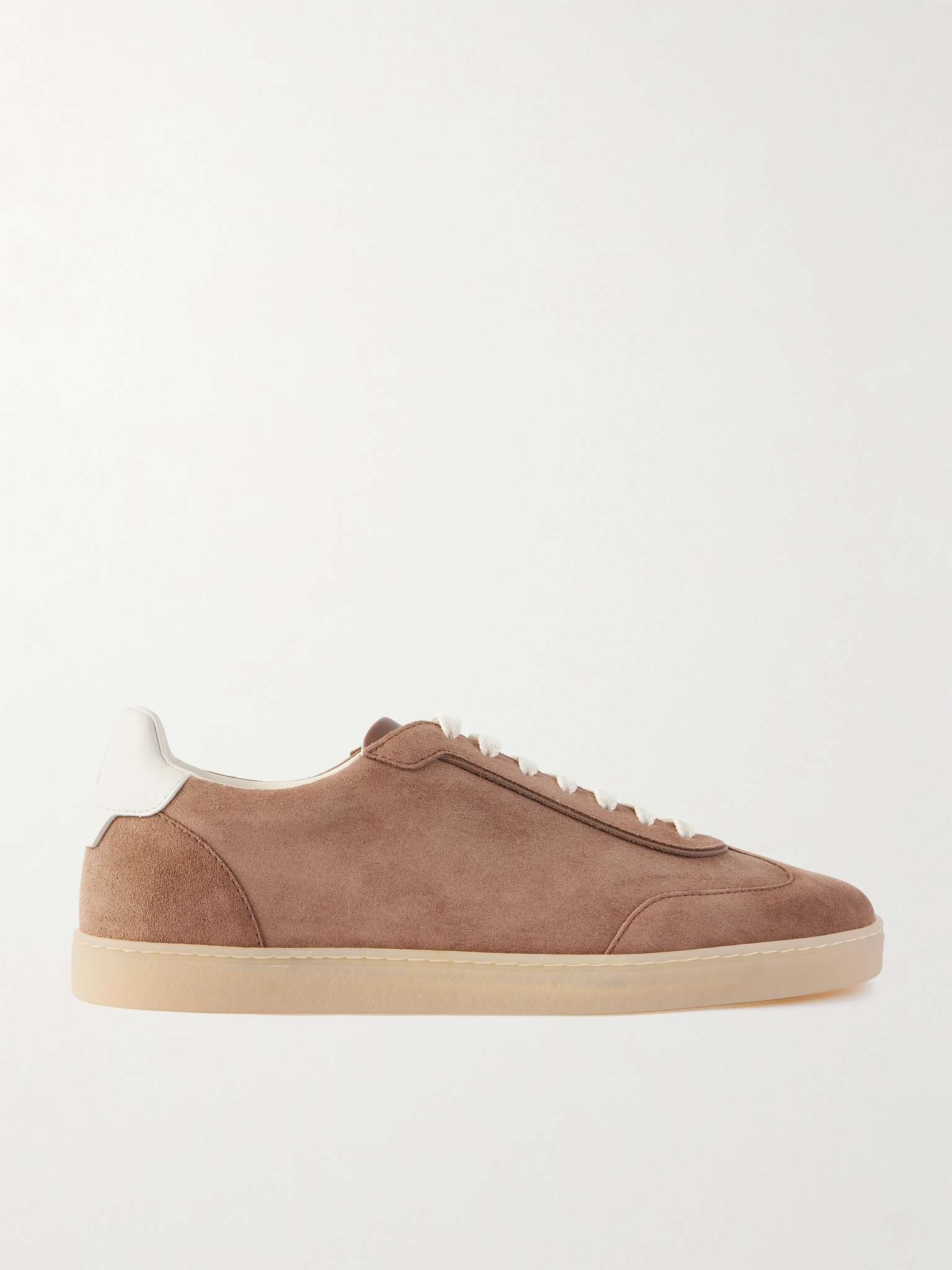 Brunello Cucinelli's sneakers work equally well for smart or casual outfits. Inspired by sporty low-tops, they've been made in Italy from light-brown suede and are printed with gold-foil logos on the leather tongues and heel tabs. Size & Fit - Fits true to size. Take your normal size - European sizing Details & Care - Light-brown suede, brown and white leather (Calf) - Lace-up - Style number: MZUSGGJ336CYM06