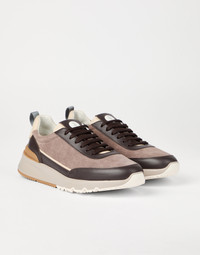 Refined Brunello Cucinelli materials elevate the Active style of these new sneakers. The velvety, slightly irregular look of washed suede is paired with semi-polished calfskin trim, enriching this style with a sophisticated texture contrast. The fine grooves on the back of the two-tone EVA outsole and on the TPU insert at the base of the heel counter complete the style of this footwear. MATERIALS Manufacturing of the refined washed suede involves hand-buffing that enriches the velvety texture with slightly irregular coloring. A leather lining completes the shoe. DETAILS Flat fabric laces Leather lining Detachable insole Sole in lightweight micro rubber REAL LEATHER