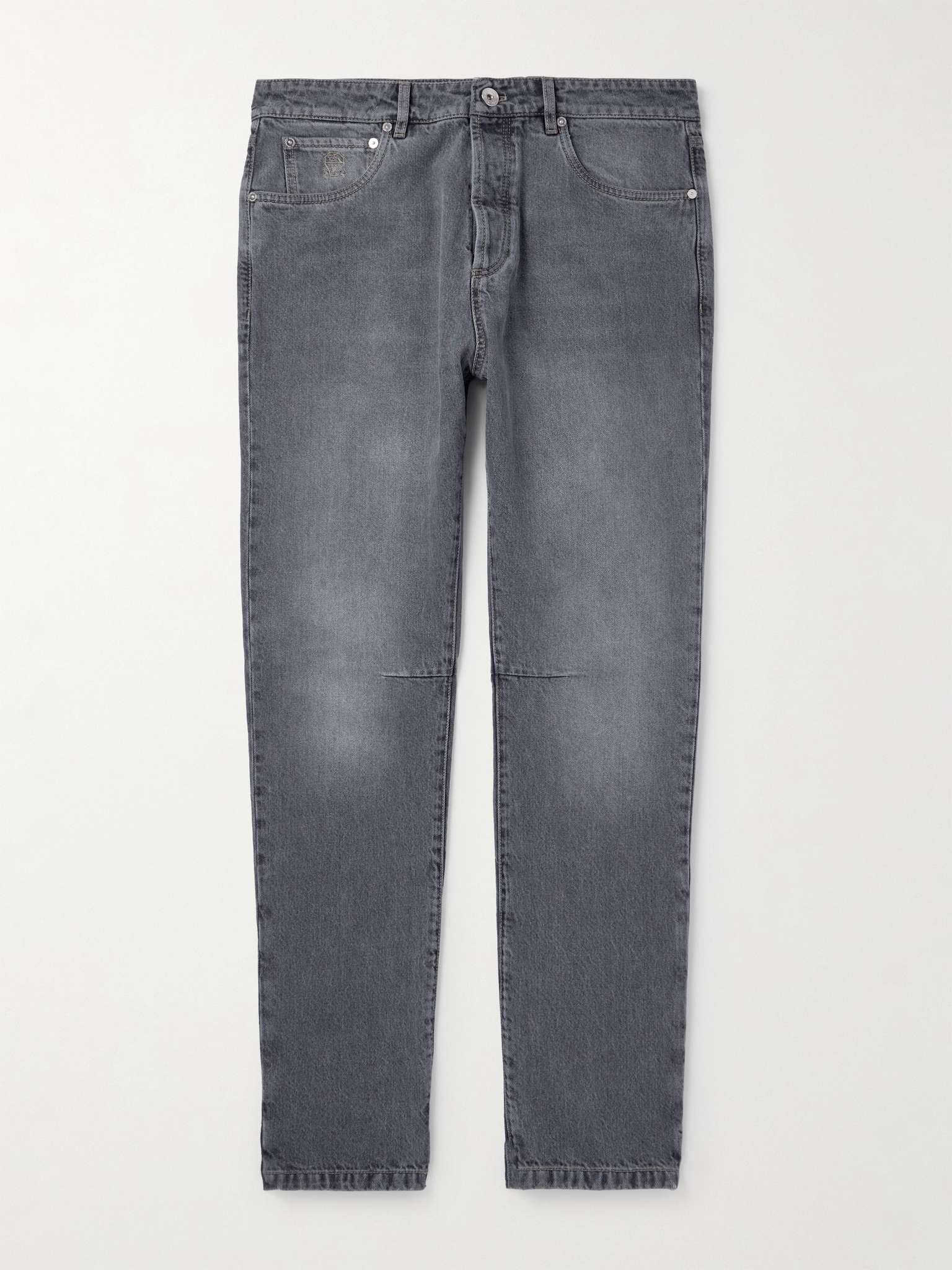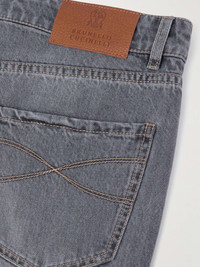 Brunello Cucinelli's jeans are cut in the brand's 'Leisure Fit' that's characterised by a comfortable seat and straight legs. They've been made in Italy from black denim with contrasting stitching and embroidered with the brand's emblem at the front pocket. Size & Fit - Fits true to size. Take your normal size - Regular-straight leg, mid-rise style - Mid-weight, non-stretchy fabric - Model is shown wearing an IT 48 - Model measures: waist size 32, height 6'2"/ 188cm Details & Care - Grey denim - Button fastenings - 100% cotton - Machine wash