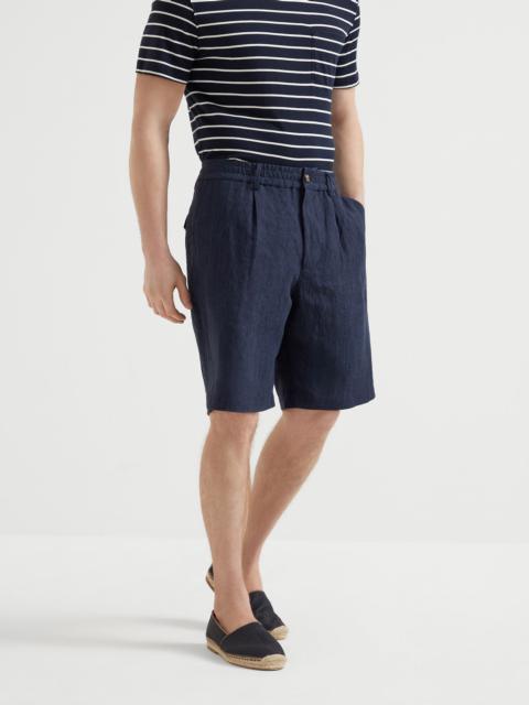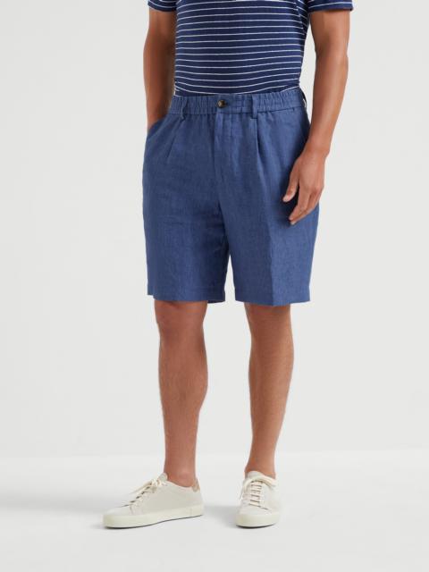 Lightweight délavé linen Bermuda shorts with elasticated waistband