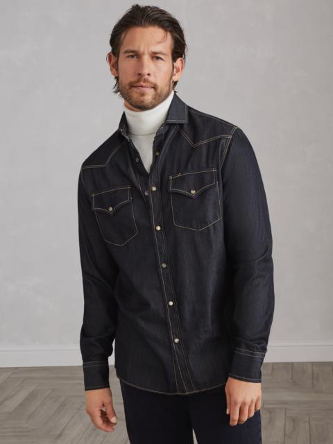 The sporty feel of lightweight cotton denim pairs perfectly with the western-inspired details of this shirt, such as the snaps, the pronounced yoke and the snap flap pockets. The easy fit is characterized by regular and pretty straight lines and is slightly shorter in length than other fits, which makes it ideal to wear over pants, for a casual style. MATERIALS The pure cotton denim is characterized by a balanced weight that makes this garment comfortable to wear, particularly in warmer weather. DETAILS Placket closure with snaps Spread collar Two patch chest pockets with flap and button Yoke Button cuffs Easy fit 100% COTTON