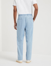 Lightweight denim leisure fit trousers with drawstring and double pleats