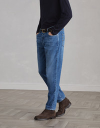 Lightweight denim traditional fit five-pocket trousers