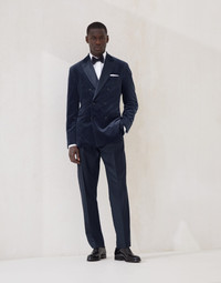A carefully tailored construction enhances the refined materials and workmanship of these virgin wool and silk tuxedo trousers. The natural fibers characterize the fabric’s lightweight twill texture with a smooth hand and distinctive sheen, enhancing the classic colors. The pleated silhouette features regular, comfortable proportions thanks to the adjustable waist tabs. MATERIALS The virgin wool and silk twill is an extremely lightweight, fluid fabric that blends the qualities of the noble natural fibers to make wearing very comfortable. The knee-length cupro lining provides the garment with added comfort. DETAILS Zip closure with metal hook and backing button Slanted front pockets Pleat Back welt pockets Plain hem Lining to knee 85% VIRGIN WOOL, 15% SILK