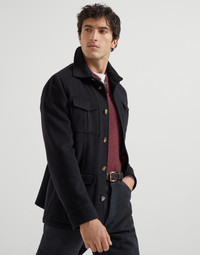 Premium Brunello Cucinelli fibers and techniques elevate the essential style of this lightweight pure cashmere cloth safari jacket. Dyed in the season’s colors, the fabric combines a cozy, lightweight texture with a smooth, ultra-soft hand, and a practical finish that makes it water-resistant. Classic details, such as the shirt collar and four-pocket design, complement the garment’s comfortable, regular fit. MATERIALS The pure cashmere fabric best expresses the qualities of the refined natural fibers to deliver a cozy, lightweight textile, characterized by an ultra-soft texture that makes it extremely comfortable to wear. A finish helps to protect the fabric from the slightest contact with water. The shearling lining ensures warmth and protection. DETAILS Horn button closure Shirt-style collar Upper patch pockets with flap and button Patch hand pockets with flap and button Button cuffs Cupro half lining Two interior pockets with button closure and pen holder 100% CASHMERE