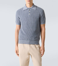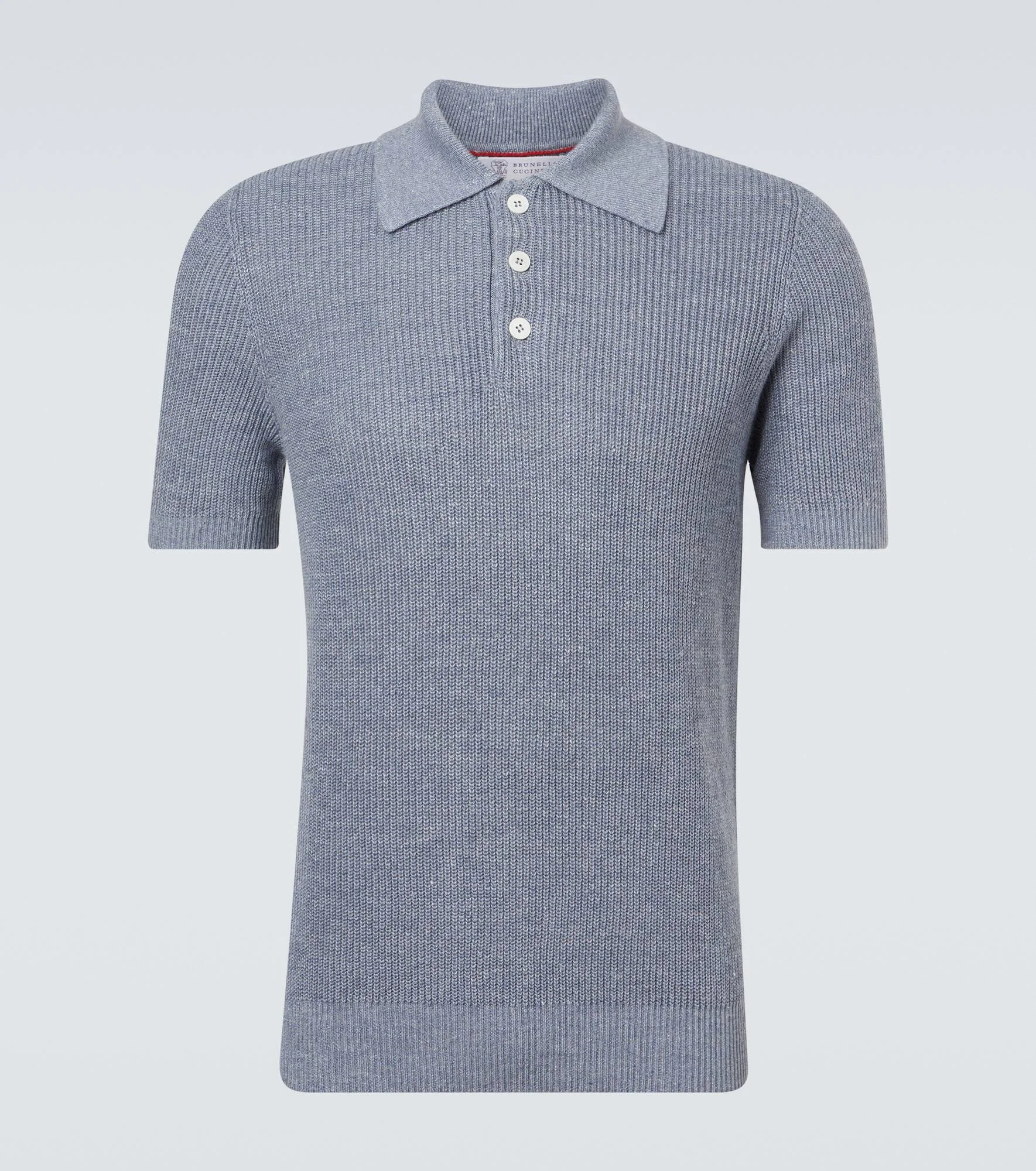 Brunello Cucinelli's designs are created in Solomeo, where art and traditions are woven into the house's every fiber. Made from linen and cotton, this polo shirt is complete with a partially buttoned front and a classic collar. Product Details - Material: 77% linen, 23% cotton - Care instructions: hand wash - Made in Italy - Designer color name: Carta Zucchero+Grigio Medio - Item color: blue, gray - Contains non-textile parts of animal origin - Collar: polo collar - Cuff: ribbed - Hem: ribbed - Closure: partially buttoned front - Item number: P01138442 Size & Fit - True to size - For a looser fit, we recommend taking one size up - Straight fit - Slightly stretchy fabric - Falls to the hip - The model in the picture is 185cm-6'1" and wearing a size IT 50