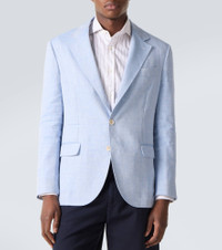 This Brunello Cucinelli blazer showcases the brand's signature craftsmanship and artisanal heritage. The garment is made in Italy from linen and wool with a two-button closure and a notched lapel. Product Details - Material: 60% linen, 40% wool - Care instructions: dry clean - Made in Italy - Designer color name: Sky Blue - Item color: blue - Notched lapel - Cuff: four buttons - Pockets: breast pocket, flap pockets, welt pocket, internal pocket - Closure: single-breasted (two buttons) - Item number: P01138389 Size & Fit - True to size - Regular fit - Non-stretchy fabric - Falls below the hip - Height of model is 189cm-74.5" and wears a size 50