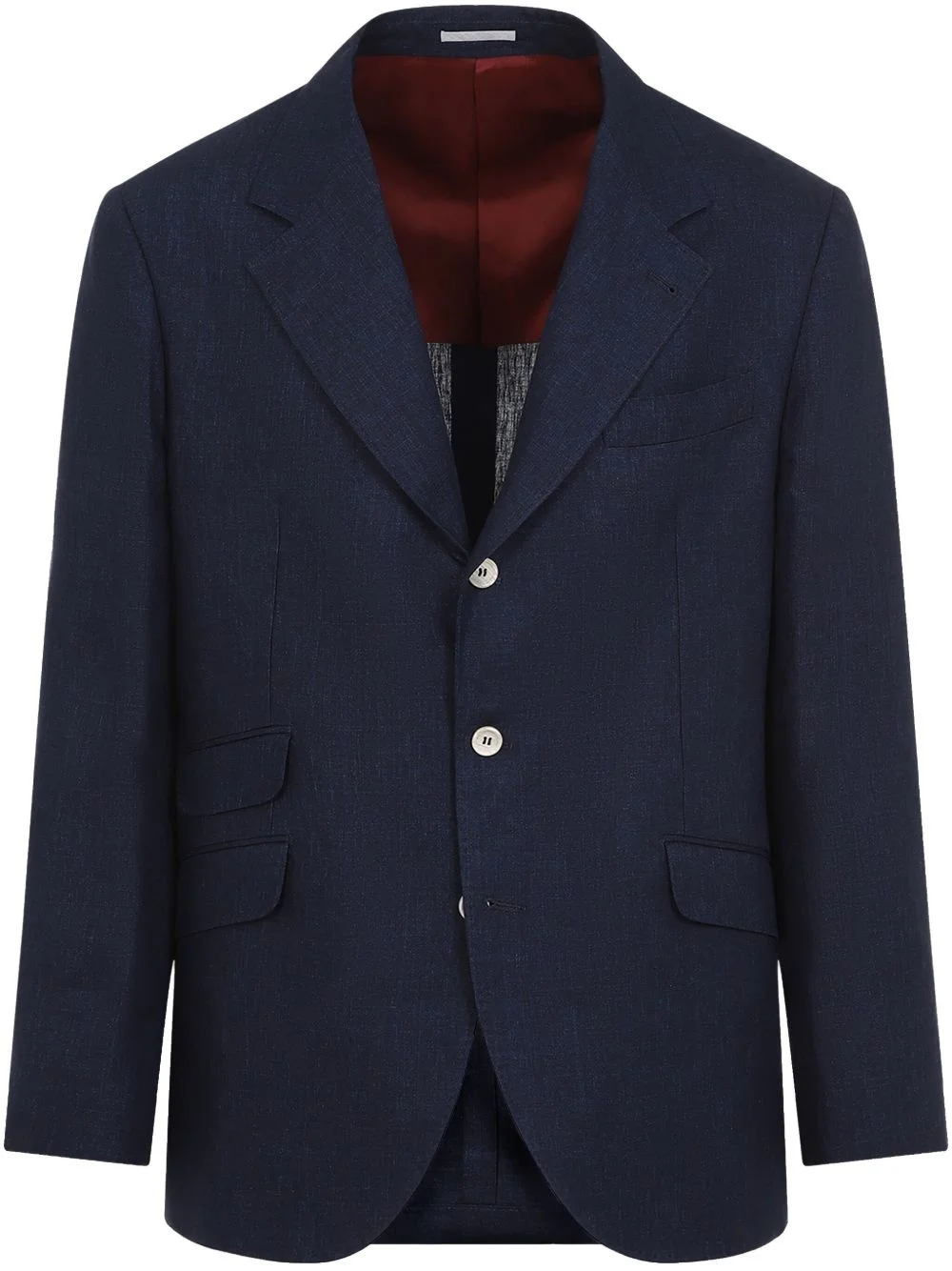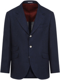 linen blazer Highlights - Navy blue - Front lace-up fastening - Chest welt pocket - Two front flap pockets - English rear vents Made in Italy Composition Linen/Flax 100% Washing instructions Read Manufacturer Guidelines
