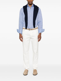 linen shirt Highlights - Blue - Front button fastening - Long sleeves - Button fastening Made in Italy Composition Linen/Flax 100%, Cotton 100% SIZE & FIT Model measurements Height 6 ft 1 in(1.85 m) Bust/Chest 38.58 in(98 cm) Hips 37 in(94 cm) Waist 30.31 in(77 cm) FittingInformation Designed for a slim fit, offering a comfortable fit that sits just away from the body Made from a lightweight non-stretch fabric