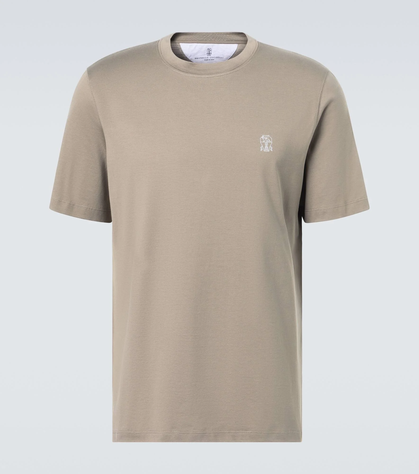 Brunello Cucinelli's designs are created in Solomeo, where art and traditions are woven into the house's every fiber. This cotton jersey T-shirt features a classic design with the brand's logo on the front for a refined touch. Product Details - Material: 100% cotton - Care instructions: machine wash at 30 degrees - Made in Italy - Designer color name: Cee40 - Item color: green - Item number: P01056042 Size & Fit - True to size - Straight fit - Slightly stretchy fabric - Falls to the hip - The model in the picture is 185cm-6'1" and wearing a size M