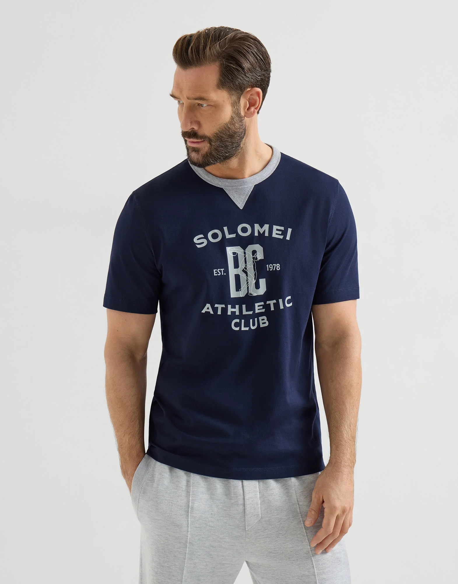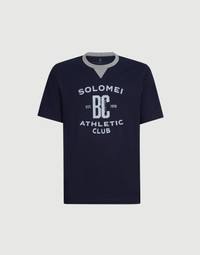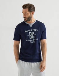 The excellence of Brunello Cucinelli materials enriches the Travelwear line, dedicated to moments of relaxation and leisure. A new print of the season completes the essential, versatile style of this cotton jersey T-shirt. Together with the crew neck with a small triangular insert, the monogram is inspired by classic athletic uniforms and conveys the garment’s sense of dynamism and versatility. Lightweight and fluid, the cotton jersey ensures comfort and softness. MATERIALS The exquisite quality of the natural cotton fibers enriches the soft jersey, a lightweight fabric with a smooth, fluid hand. DETAILS Crew-neck with triangle Sleeves with flat pressed hem Flat pressed hem 100% COTTON